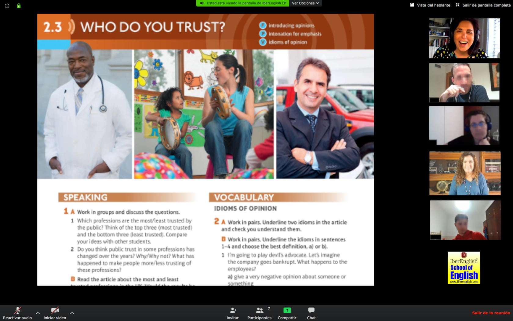 EMPHASIS SPEAKING: Este curso conversacional en grupo no es como ninguno que hayas experimentado. En este curso los participantes combinarán la conversación con la resolución de problemas, la creatividad, el trabajo en equipo y el razonamiento analítico. SOLO ONLINE ZOOM.